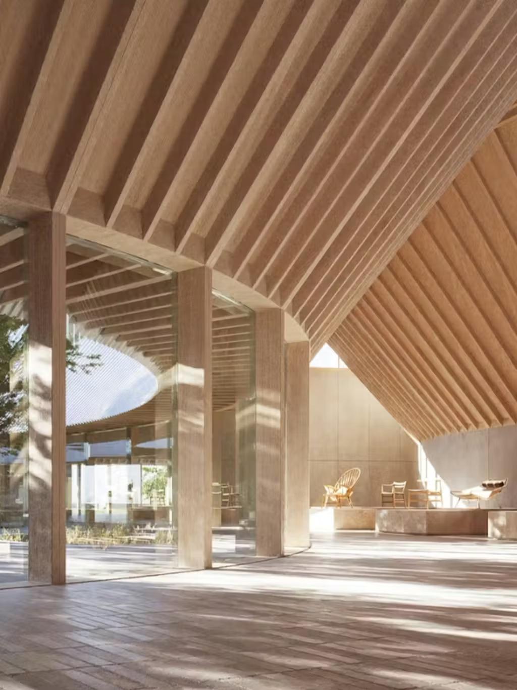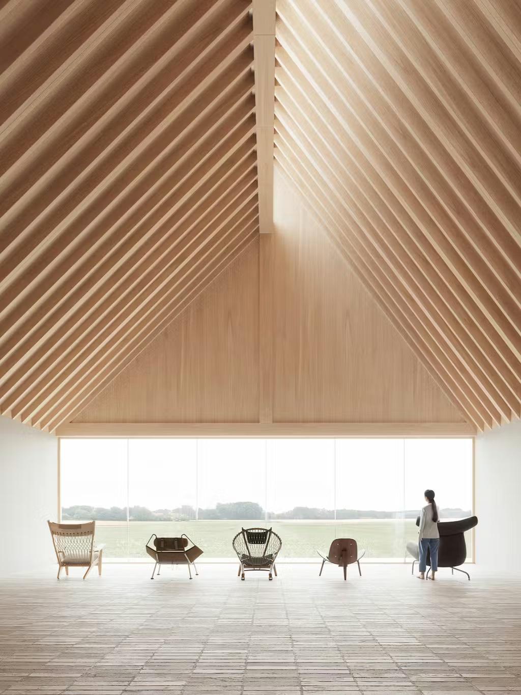 Когда-то, еще в XV веке, на этом месте была ферма. Теперь полуразрушенные постройки 1445 года дополняют современные каркасы из дерева, любимого материала Вегнера. В экспозиции представят культовые объекты дизайнера — это открытое пространство, так что рассмотреть каждый из них можно будет со всех сторон. Тем более, что для творчества самого Вегнера это очень важно: «У стула не может быть „обратной стороны“. Он должен хорошо смотреться под любым углом», — сказал он однажды. По тем же принципам архитекторы и создавали проект.