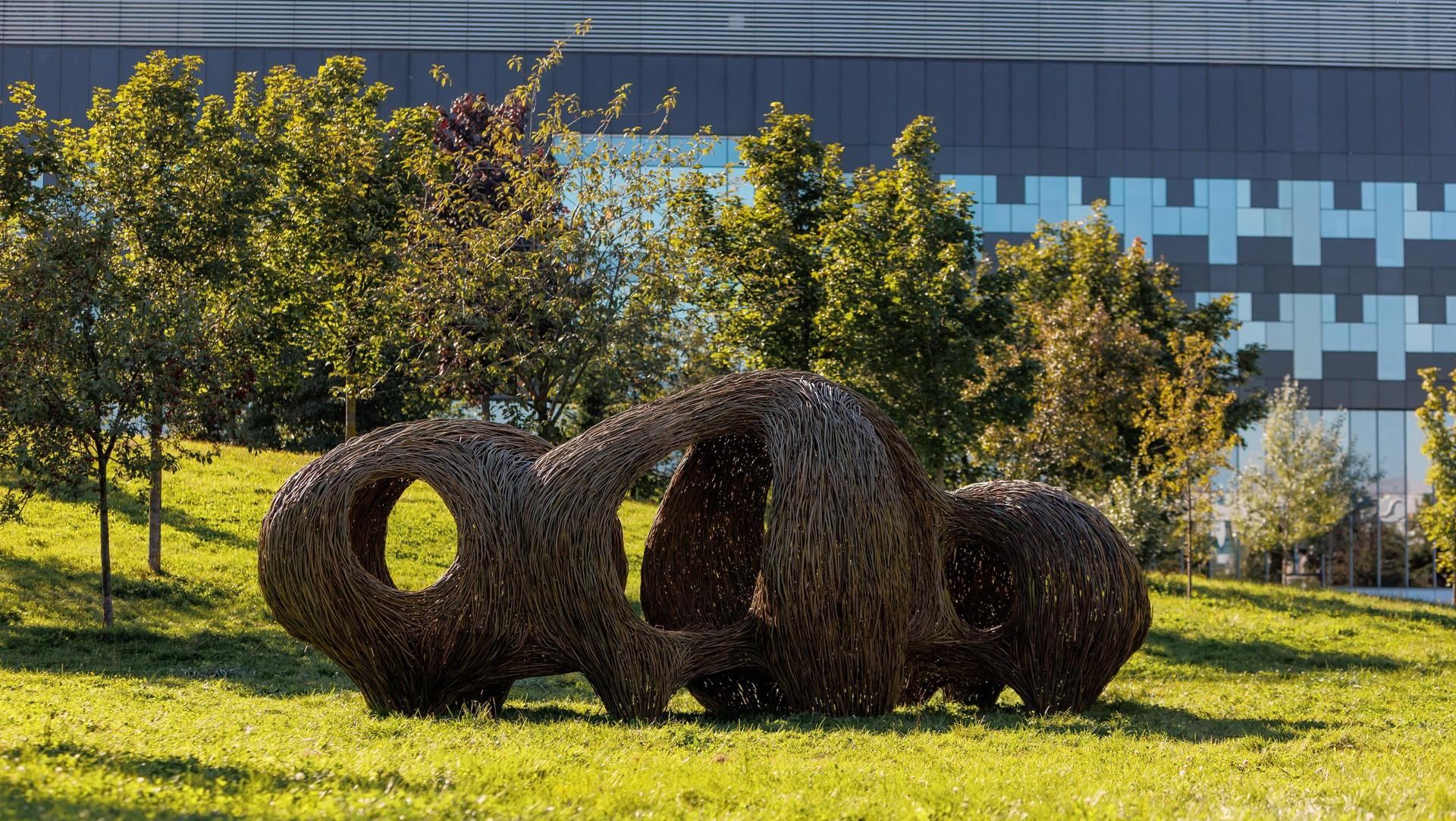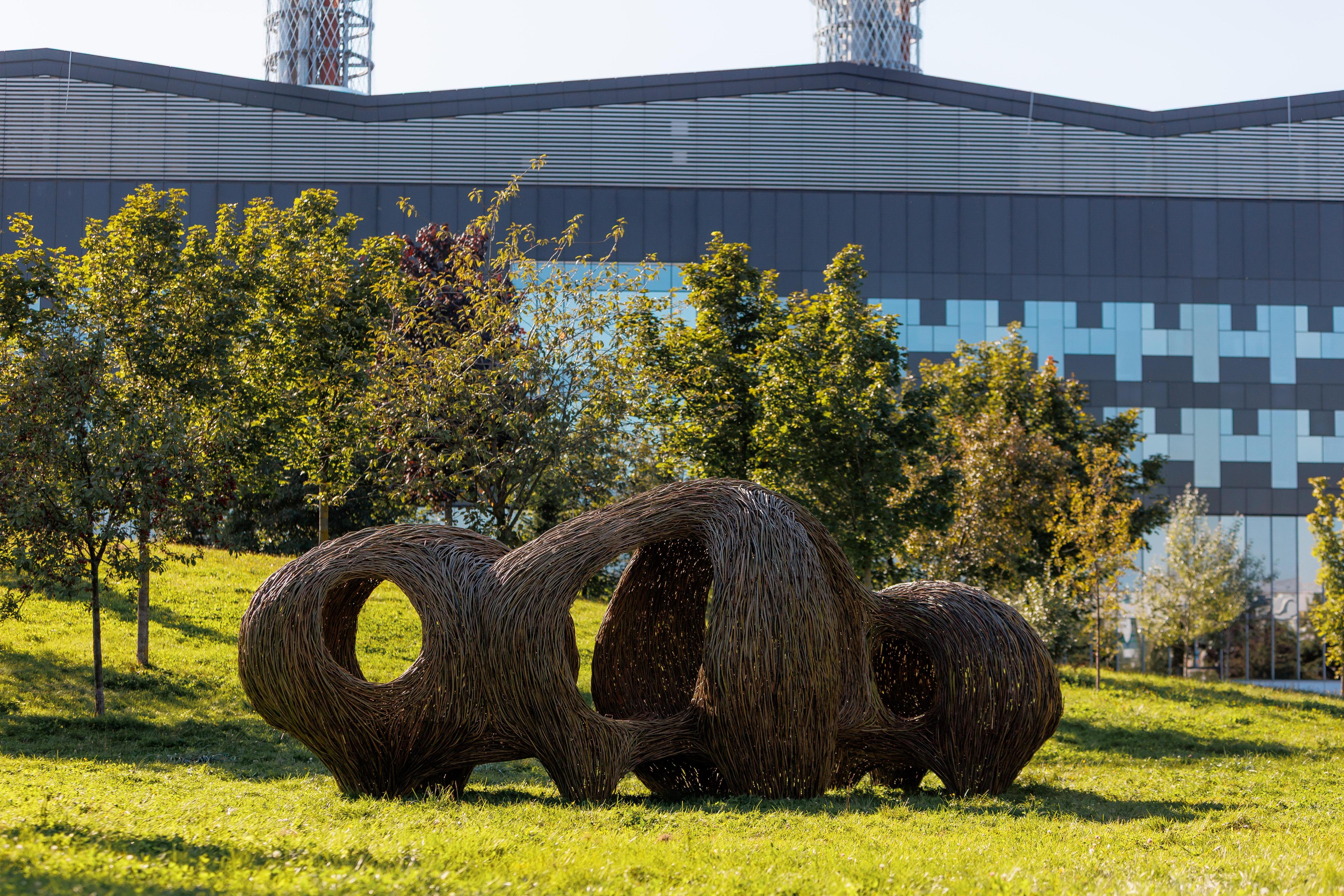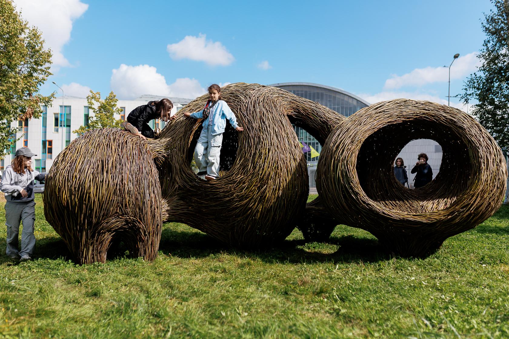 Первые три объекта фестиваля появятся ко Дню города. В их числе работа «Лунная долина» от минских скульпторов из творческой мастерской «Эхо» — Полины Пироговой и Василия Тимашова. Она расположится в саду Технопарка напротив Международной гимназии Инновационного центра «Сколково». Тандем художников часто использует природные материалы и особенно — плетение из лозы. Составленный из трех округлых частей, он напоминает то ли кратеры, то ли спутники, перетекающие друг в друга. Эта живая взаимосвязь призвана настроить зрителя на созерцание и размышления.