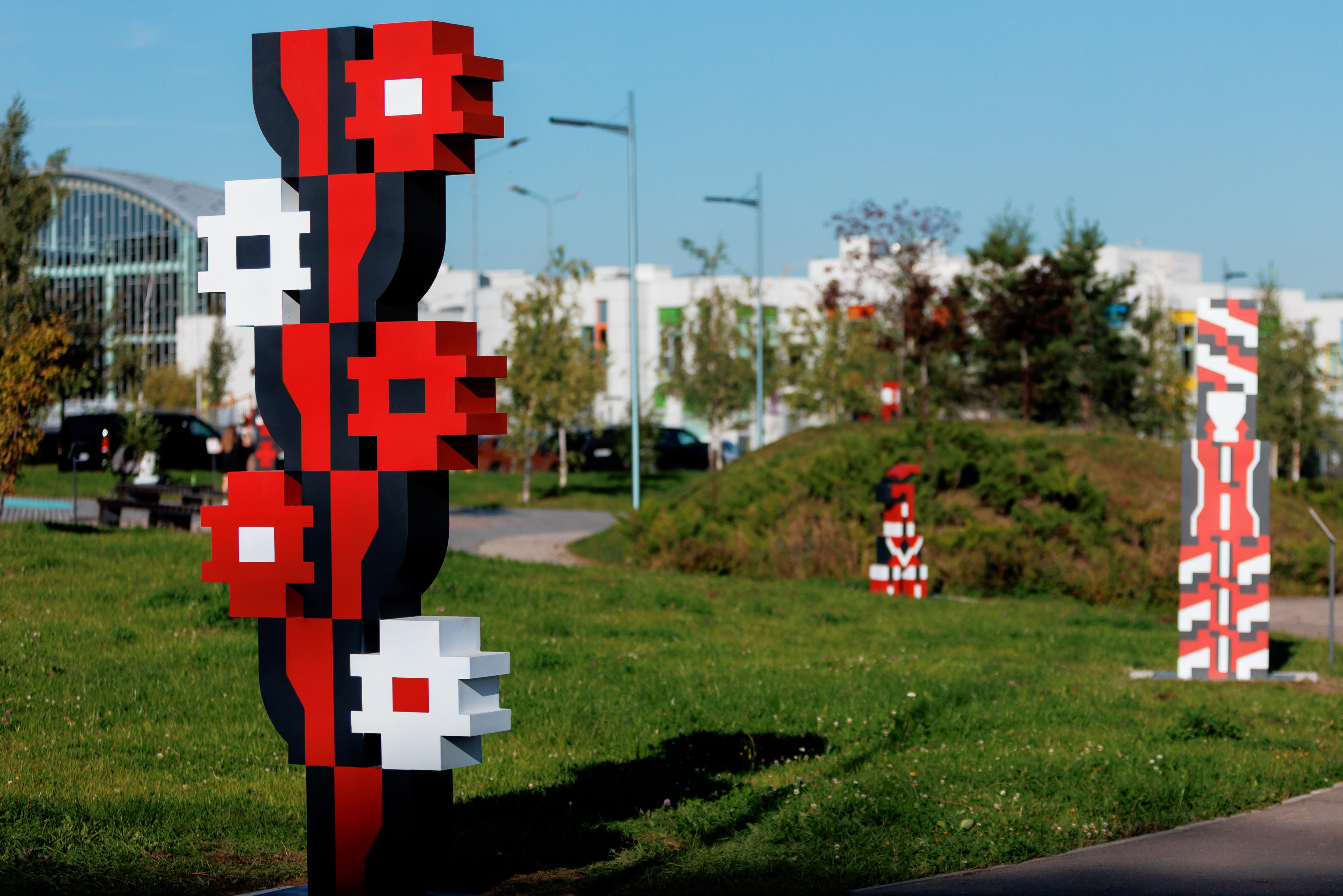 Возле Центрального бульвара находится инсталляции Дианы Воубы «Алфавитяне. Игра в Алфавит». Произведение, ранее состоявшее из антропоморфных и зооморфных существ, дополнилось флоральными композициями. Эти красно-бело-черные объекты — результат переосмысления идей русского авангарда. Художница придумала мир планеты Ан с существами, способными трансформироваться и создавать многомерные геометрические формы из знаков-символов, образующих бесконечный алфавит.