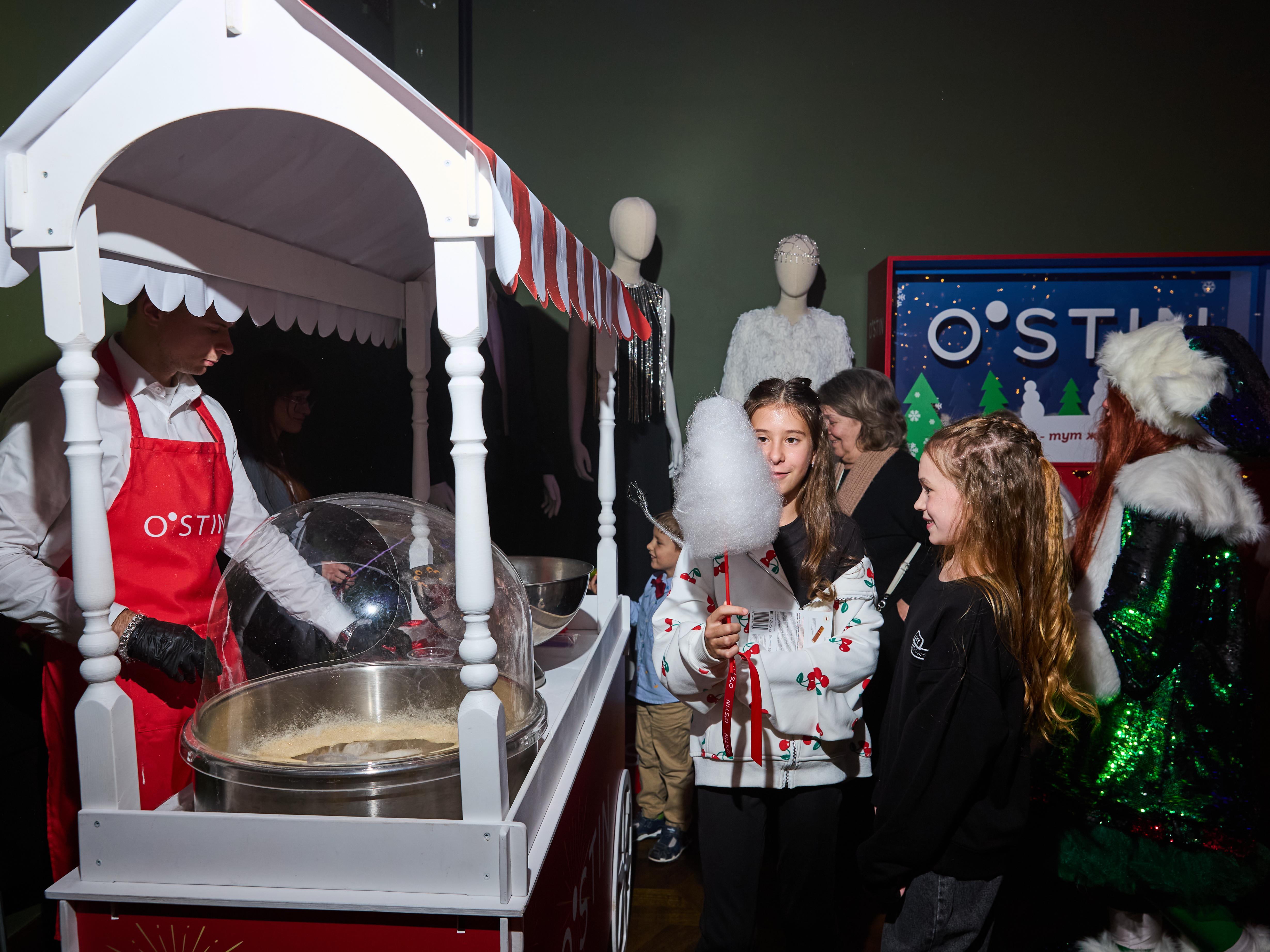 В этом году бренд O’STIN подготовил для маленьких гостей яркое праздничное пространство. Бренд создал уютную зону, где дети и родители могли угоститься сладкой ватой, а также познакомиться с новогодней коллекцией для взрослых и детей.