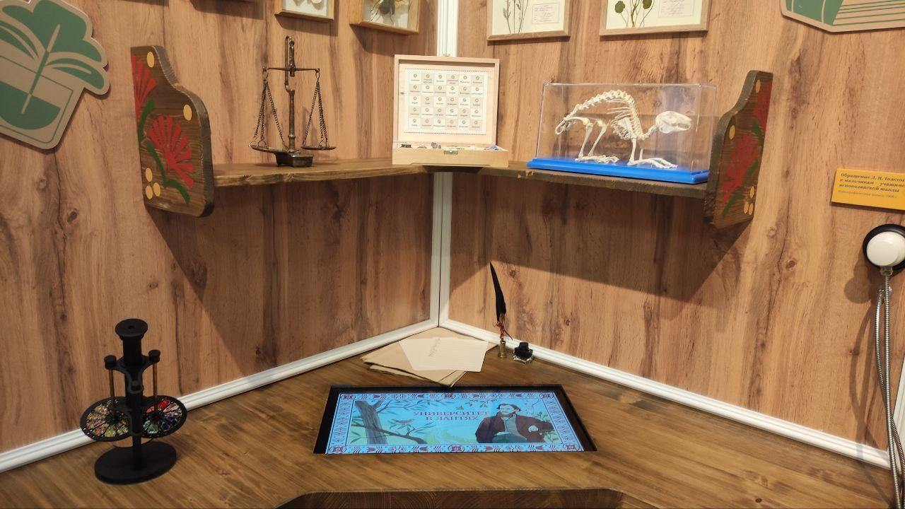 Во втором, интерактивном пространстве «Университет в лаптях» можно познакомиться с системой педагогических взглядов Толстого, особенностями его школы для крестьянских детей, жизни усадьбы, крестьянским бытом деревни. Пространство получило свое название благодаря семинарии для учителей народной школы, которую планировал открыть писатель.