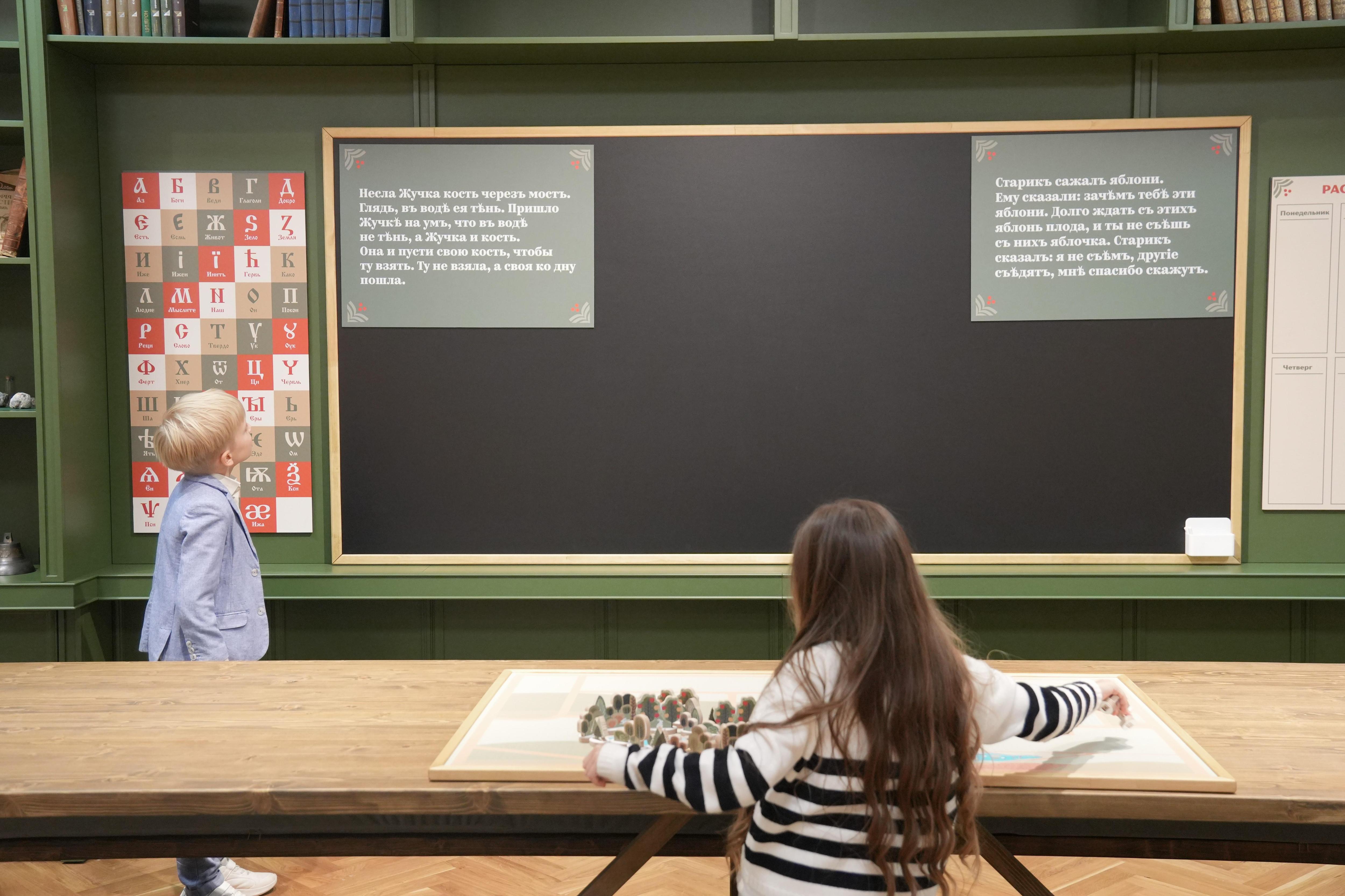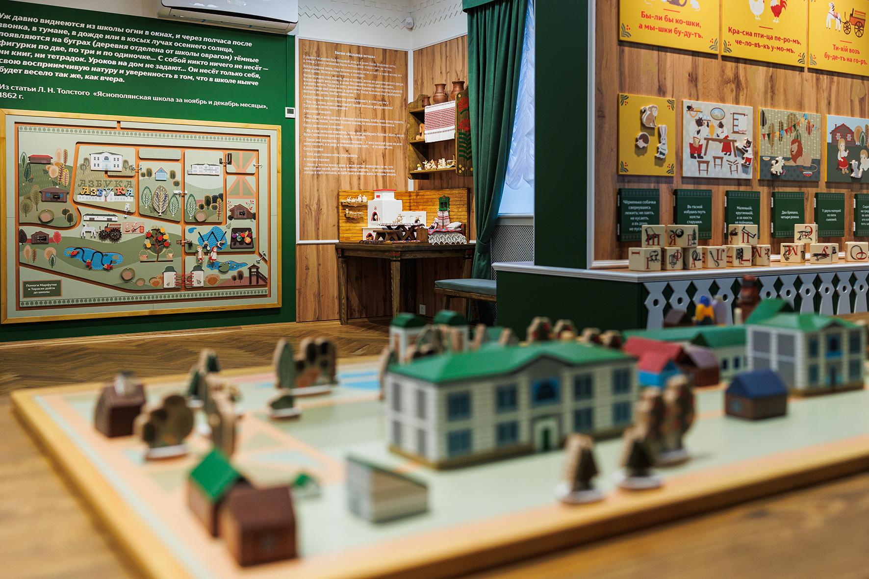 Маленькие посетители центра могут занять себя бизибордом (игровая доска) «Ясная Поляна», поиграть с макетом крестьянской избы и нарядить кукол в «Мужской и женский костюм Тульской губернии». Для младших школьников в зале есть учебный уголок с грифельной доской, счетами, заданиями по арифметике и чтению. Можно даже услышать голос Льва Толстого, его обращение к детям, записанное в начале XX века в фонограф.
