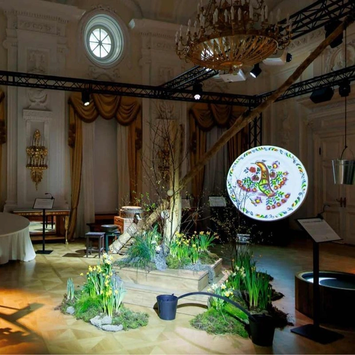 Авторы проекта «РУ-локации» приглашают в наполненное яркими эмоциями путешествие к нашим общим корням. В новой ни на что не похожей экспозиции традиции предков оживают в образах, звуках и ароматах. Началом пути становится световая инсталляция «Сон, да не сон» в Кавалерской гостиной: она настраивает на трогательные детские воспоминания и особый колорит проекта. Затем зрители видят масштабную арт-инсталляцию с проекцией под куполом Круглого зала и дополнительными атмосферными элементами.