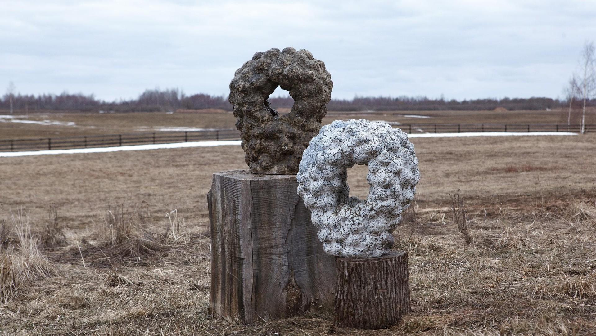 Марина Акилова. Керамические скульптуры «Сквозь», 2024. Дровяной обжиг, шамотная масса, фарфор, красная глина, зола.