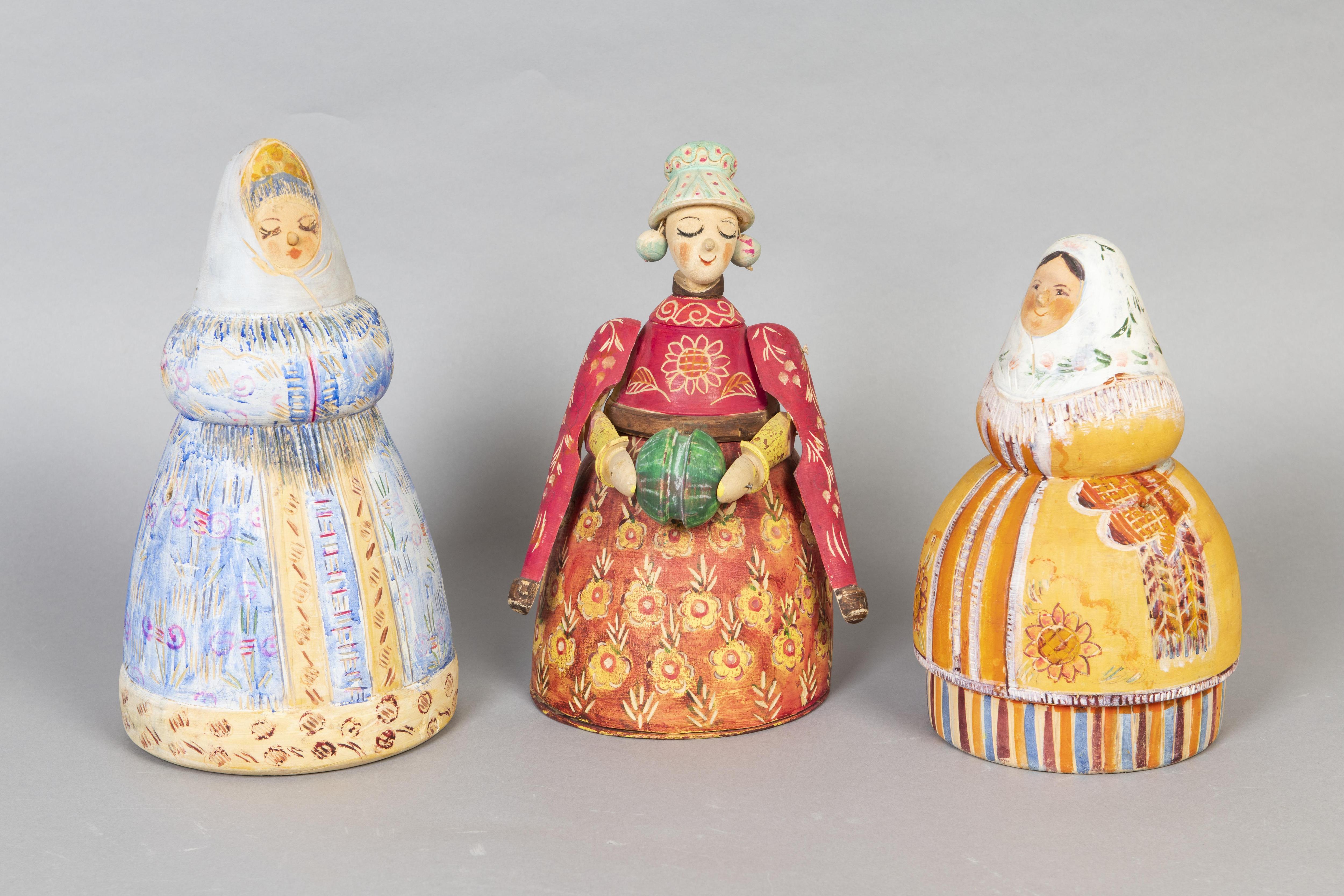И. К. Стулов, Р. С. Кобяшева. Скульптуры «Боярышня», «Барыня», «Купчиха», 1960-1970-е. Дерево, точение, резьба, роспись.