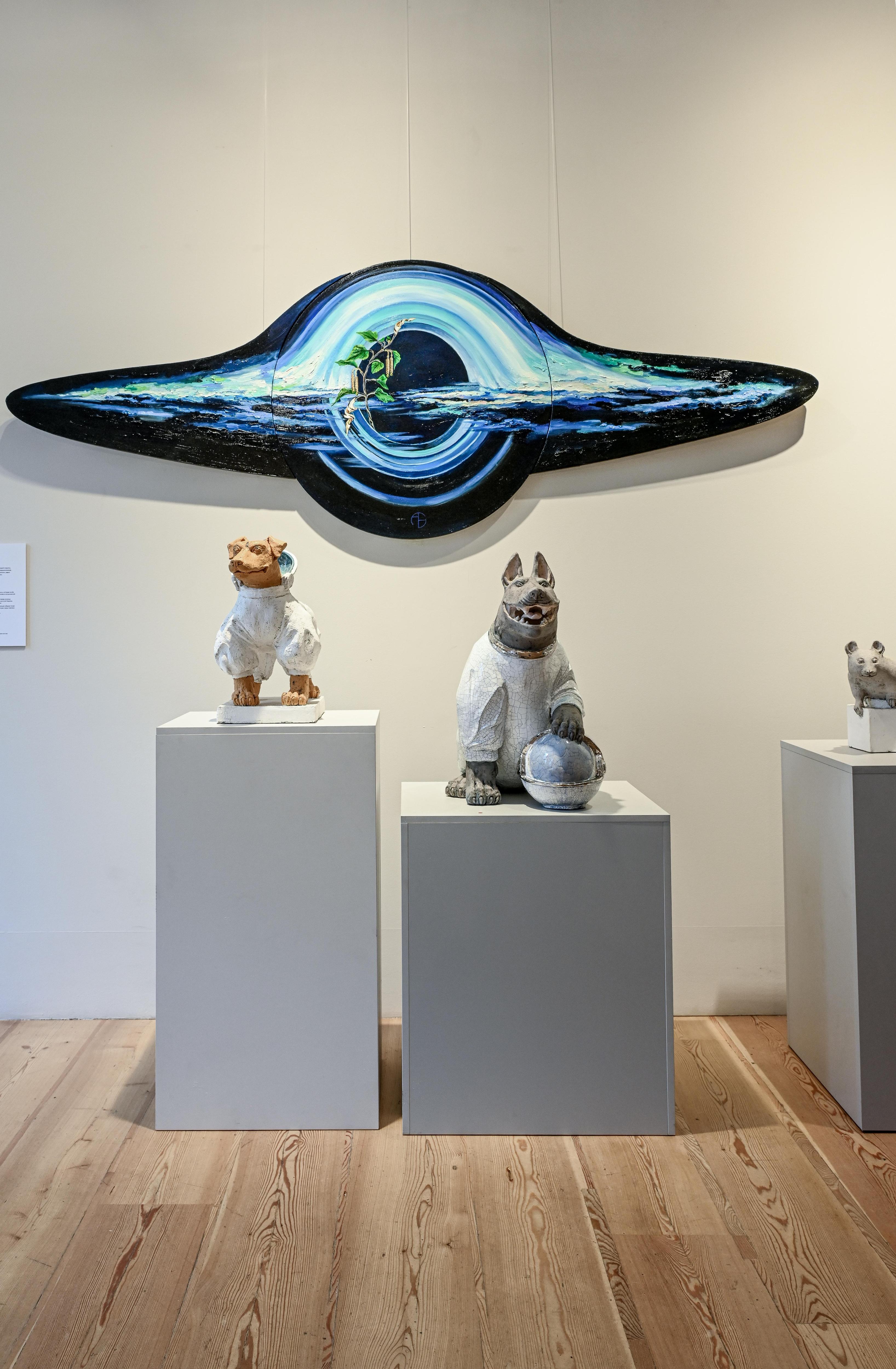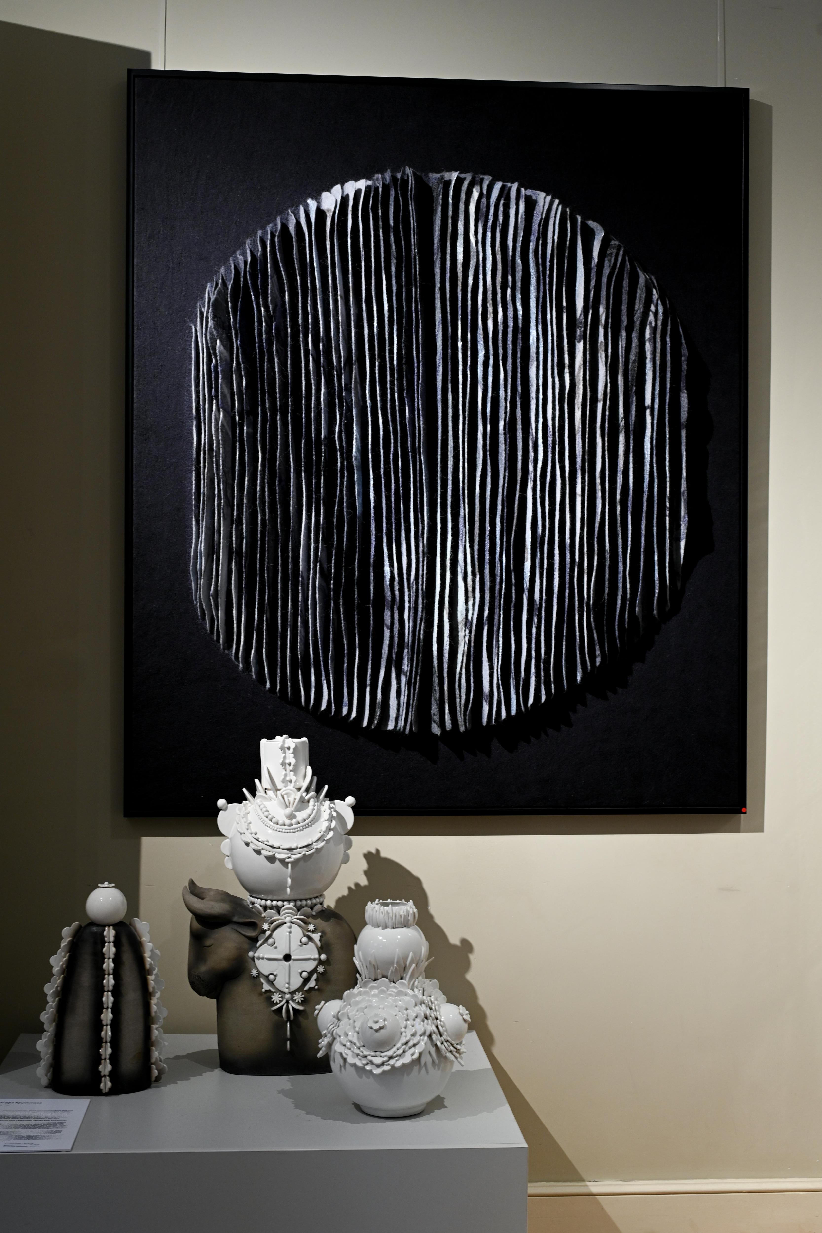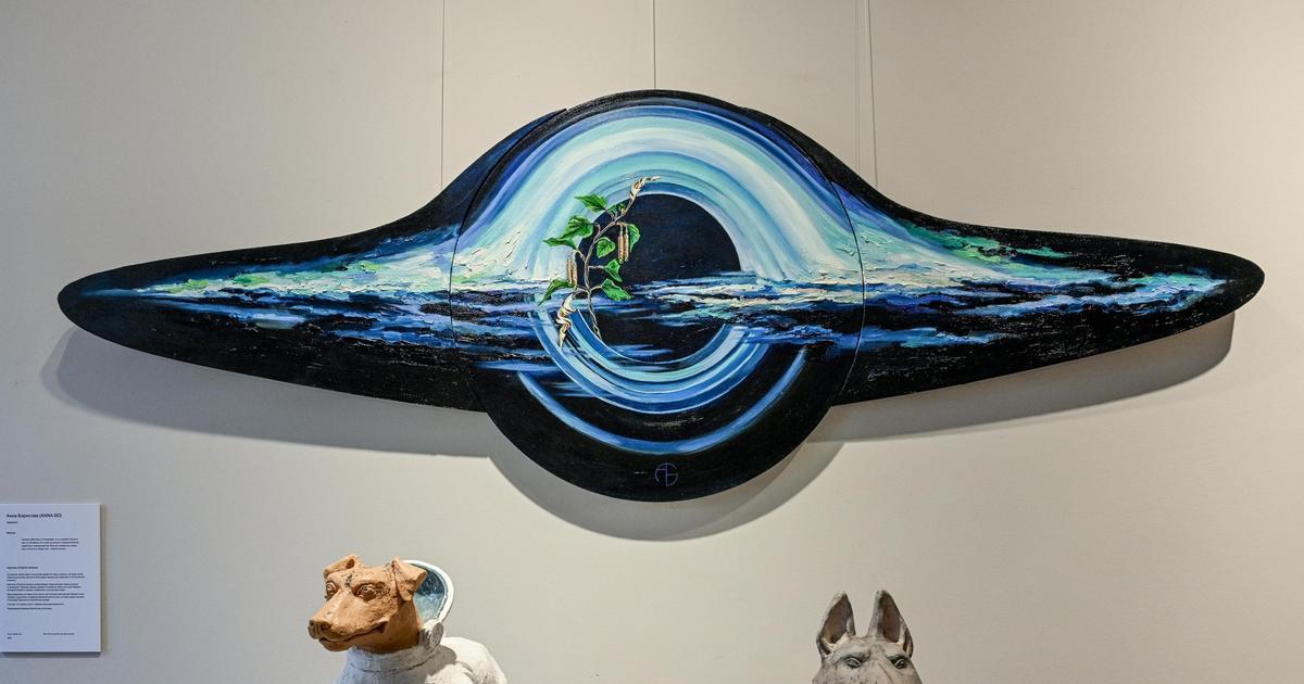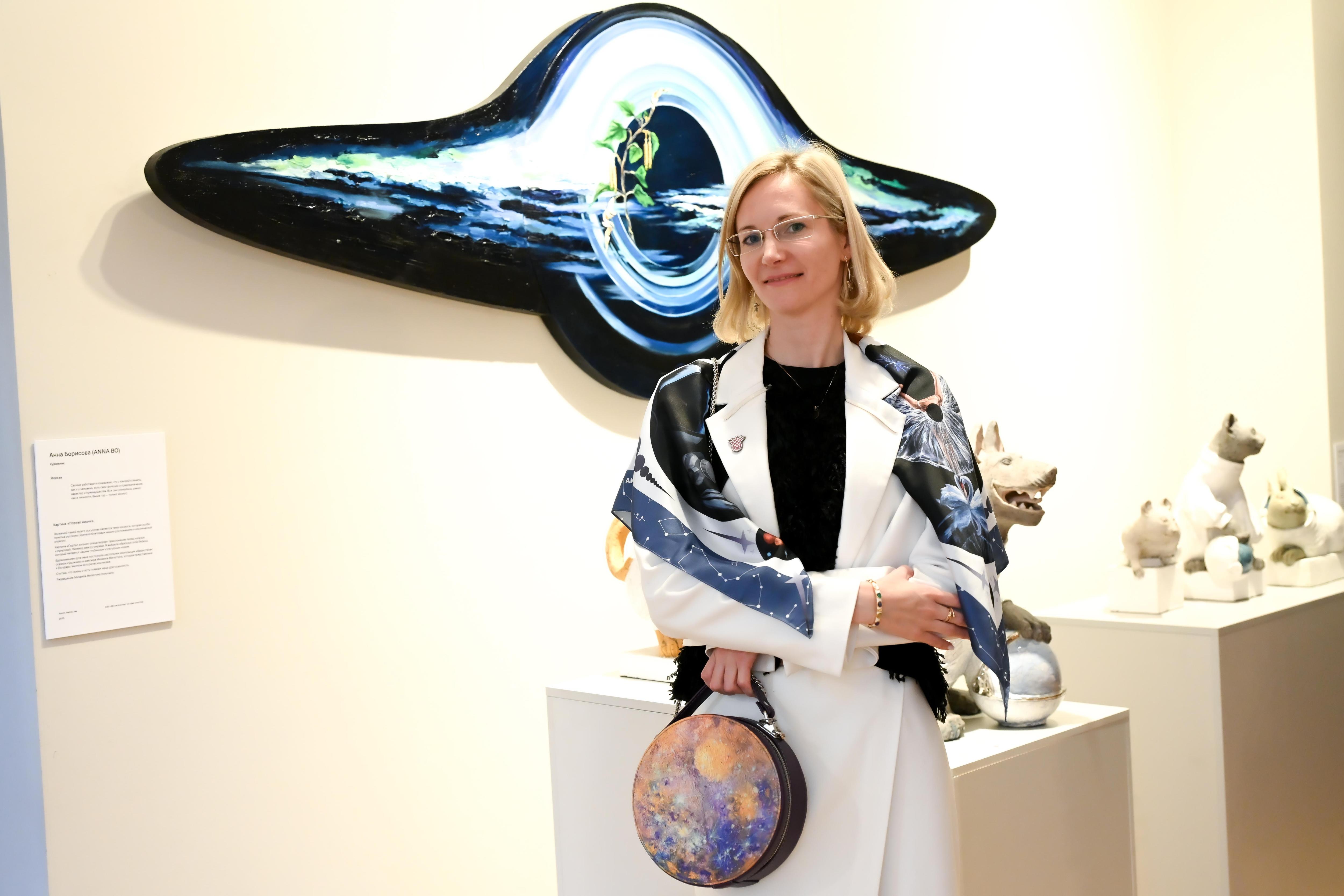 Но были и более глубокие, даже сложные предметы. Особенно впечатлило панно художницы Анны Борисовой (ANNA BO) под названием «Портал жизни». Работа в виде черной дыры, из которой прорастает березка. Черная дыра — образ со множеством смыслов, как негативных, так и позитивных — выбирай любой. Я считала его, как образ России, которая притягивает и не отпускает. Сразу вспомнила друзей-иностранцев, которые приехали в нашу страну на время и остались навсегда.
