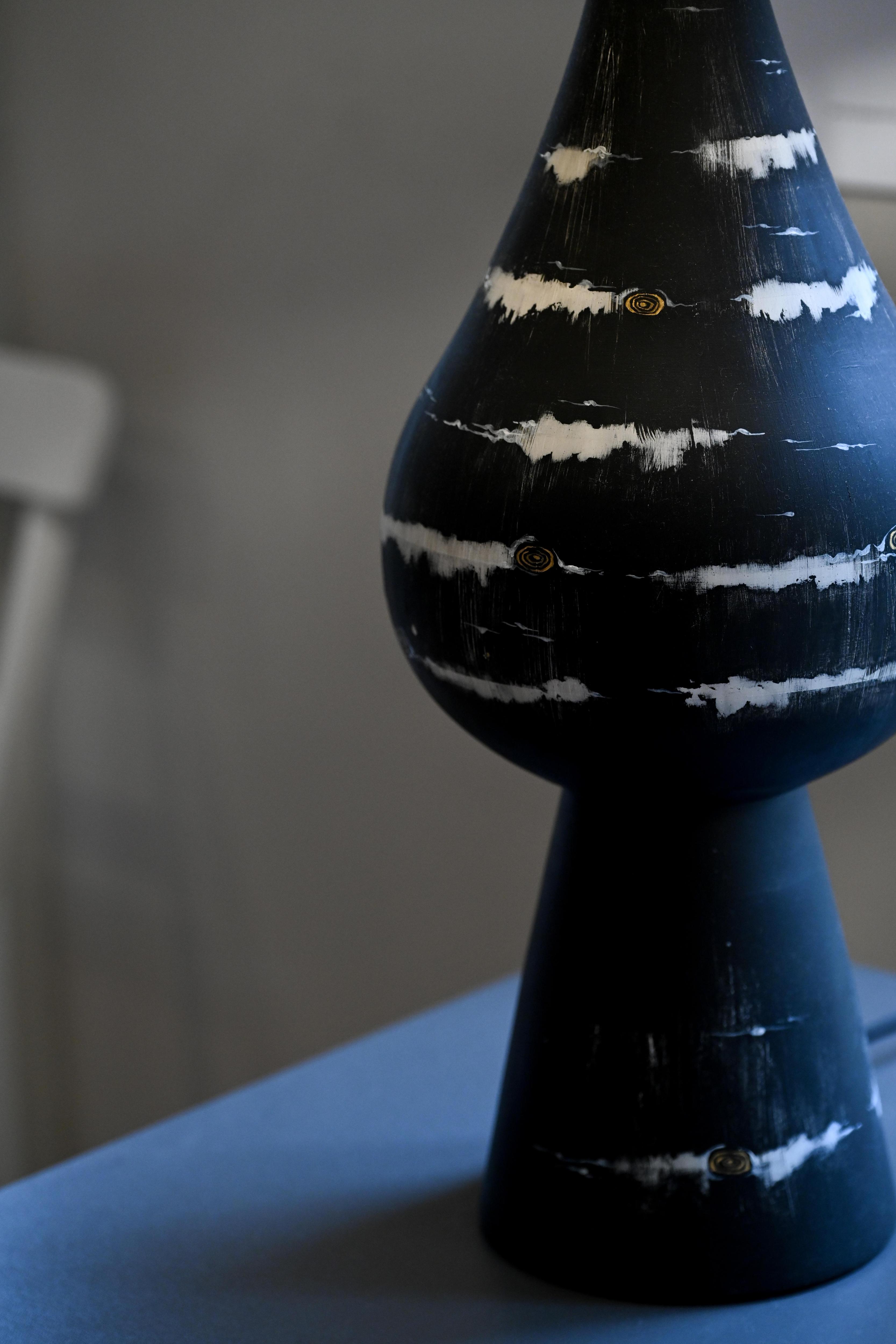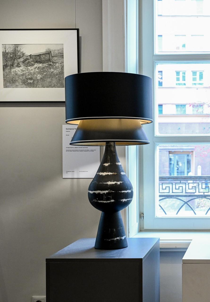 А это лампа — часть проекта Ольги Микковой «За тобой». Под абажуром будто ствол березы, но это береза-наоборот — другие цвета, другая фактура, но внимательный зритель уже все понял.