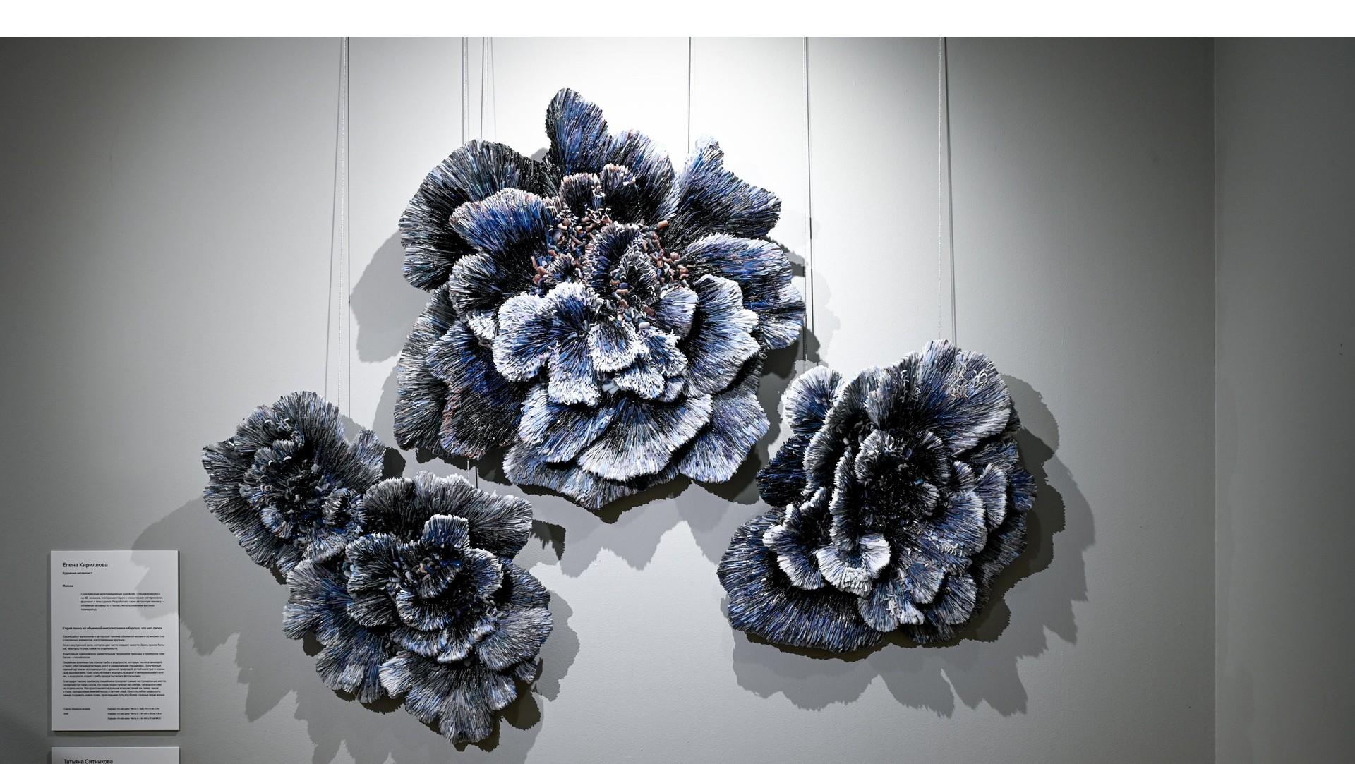 Еще одна тема, которая попадала в сердце — это тема русской природы. Вот декоративное панно: немного странный узор, но что-то очень знакомое. Нет, это не объемные цветы…Это лишайники, которые художница Елена Кириллова детально изучила и превратила в интересное серое кружево из объемной микромозаики под названием «Хорошо, что нас двое».