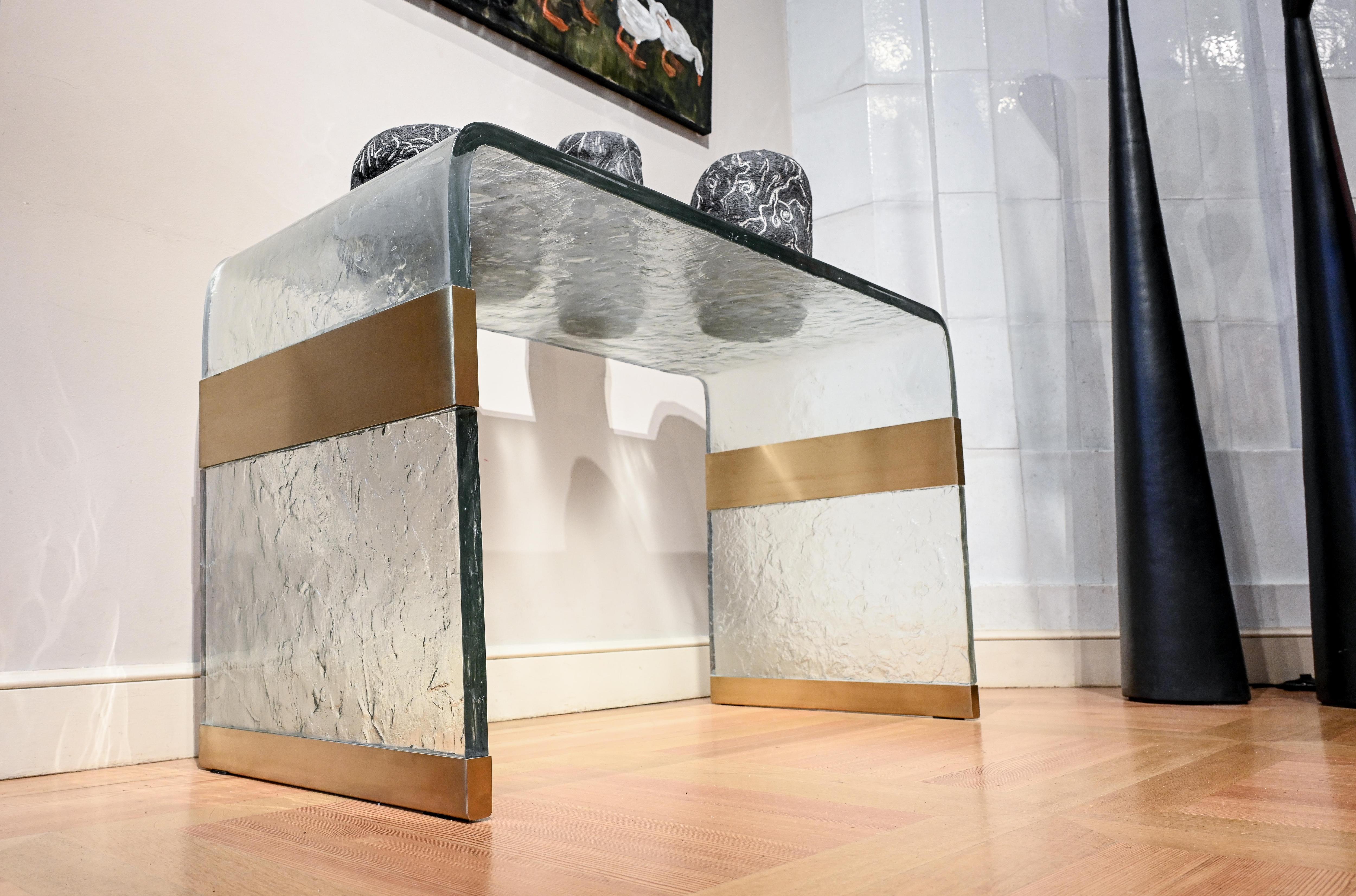 Стеклянный стол «Сны Байкала» от Марии и Павла Ивановых — как кусок чистого озерного льда или как искрящаяся сосулька, которую в детстве все пробовали на вкус.