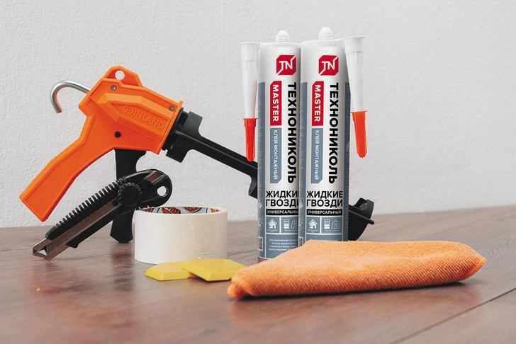 Жидкие гвозди — это высокопрочный клей, способный выдерживать нагрузку до 100 кг на квадратный сантиметр. Основное его преимущество — это отличное сцепление с различными поверхностями: деревом, керамикой, металлом, стеклом, бетоном и пластиком.