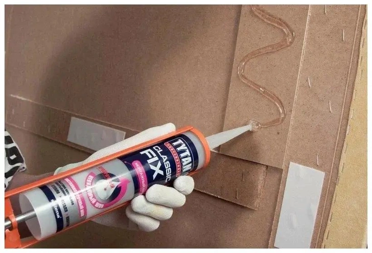 Теперь основной этап — как правильно клеить жидкими гвоздями.