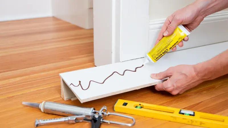 Если нужно заполнить вертикальную щель между двумя деталями (например, между стеной и торцом панели), наносите клея чуть больше, чем кажется нужным. При сжатии излишки выйдут наружу, гарантированно заполнив пустоту внутри.