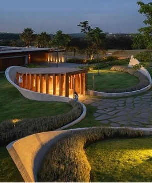 Испанское бюро RCR Arquitectes завершило работу над проектом Alwah House на окраине Дубая. Это представляет комплекс изогнутых объемов, организованных вокруг сада с водоемом, который формирует прохладный микроклимат