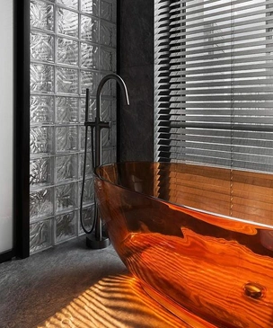 найдено 634 материалаКвартирыОранжевая ванна, хаммам и стеклоблоки: квартира 45 м² в Москве для молодого IT-специалиста