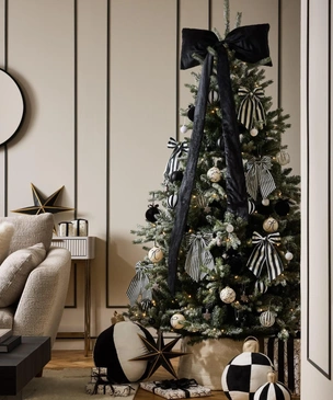 Черно-белый, гирлянды из деревяшек или цветы вместо елочных игрушек— собрали нетрадиционные варианты новогоднего декора